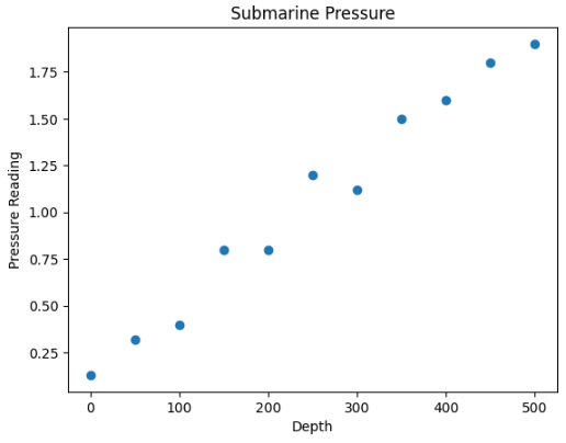 This could be any data. I will make up a story about this data and say that this is different pressure readings (ys) on a submarine at certain depths (xs).